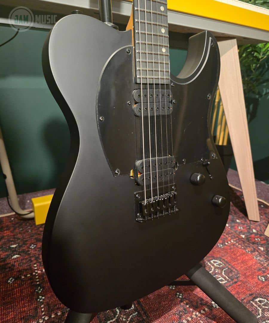 The Spira T-400 MBK Baritone in Satin Black dives into extended-scale territory with modern attitude. With its 27″ scale length, roasted poplar body and Canadian roasted maple neck, this guitar delivers tight, articulate lows without losing clarity or definition. Dual Villain™ high-output humbuckers bring aggressive punch for down-tuned riffs and soaring leads, while locking tuners and premium hardware ensure rock-solid stability on stage or in studio. Built for players who demand big tone in a refined package.